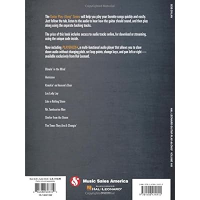 (Guitar Play-Along). The Guitar Play-Along Series will help you play your favorite songs quickly and easily! Just follow the tab, listen to the audio to hear how the guitar should sound, and then play along using the separate backing tracks. The melody and lyrics are also included in the book in case you want to sing, or to simply help you follow along. This volume includes 8 Dylan favorites, including: Blowin' in the Wind * Hurricane * Knockin' on Heaven's Door * Lay Lady Lay * Like a Rolling Stone * Mr. Tambourine Man * Shelter from the Storm * The Times They Are A-Changin'. The price of this book includes a unique code that provides access to audio tracks online, for download or streaming. The tracks include PLAYBACK+, a multi-functional audio player that allows you to slow down audio without changing pitch, set loop points, change keys, and pan left or right available exclusively from Hal Leonard.